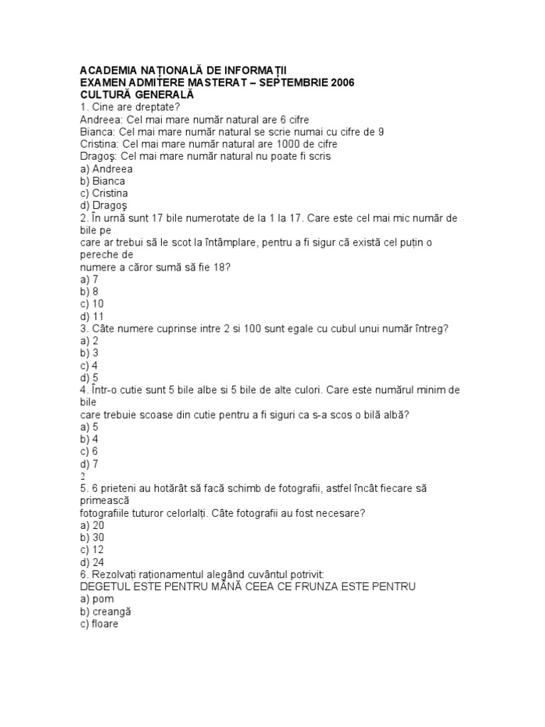 vizitati articolul complet aici : https://play.google.com/store/apps/details?id=ro.pontes.culturagenerala&hl=en_IN&gl=US Elena luminita, grile de limba romana pentru admiterea in invatamantul superior. Ar fi mult mai interesant să se publice mai des aceste teste de cultură generală sunt interesate. 15 întrebări de cultură generală pentru copii curioși.
